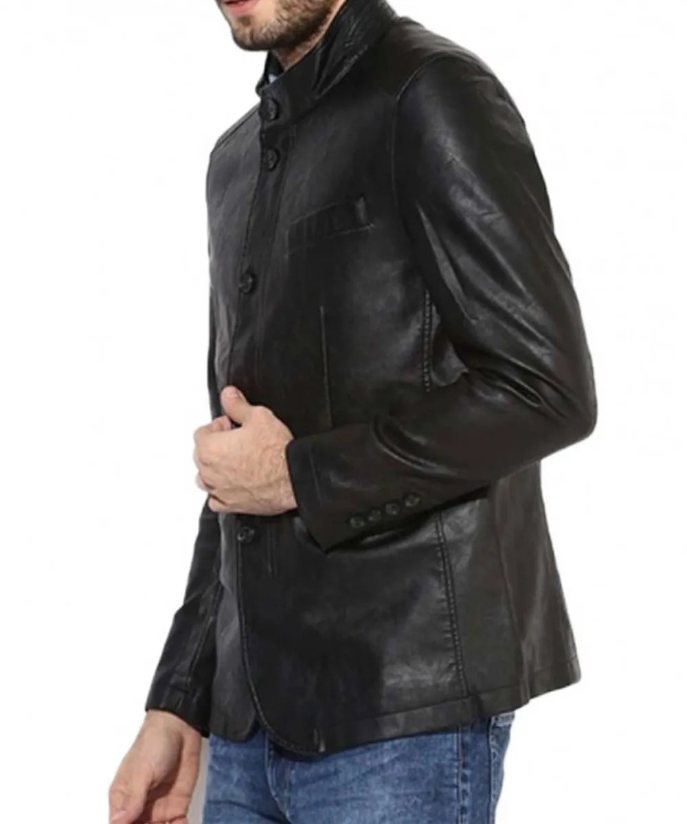 Men Black Leather Blazer
