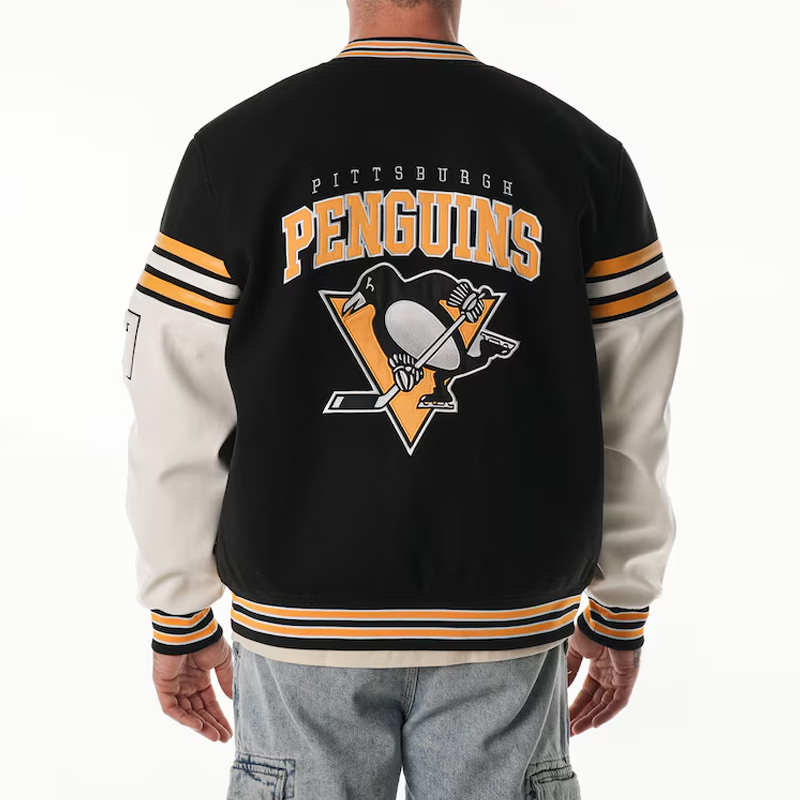 Pittsburgh Penguins Drop Shoulder Varsity Wool/Leather Jacket