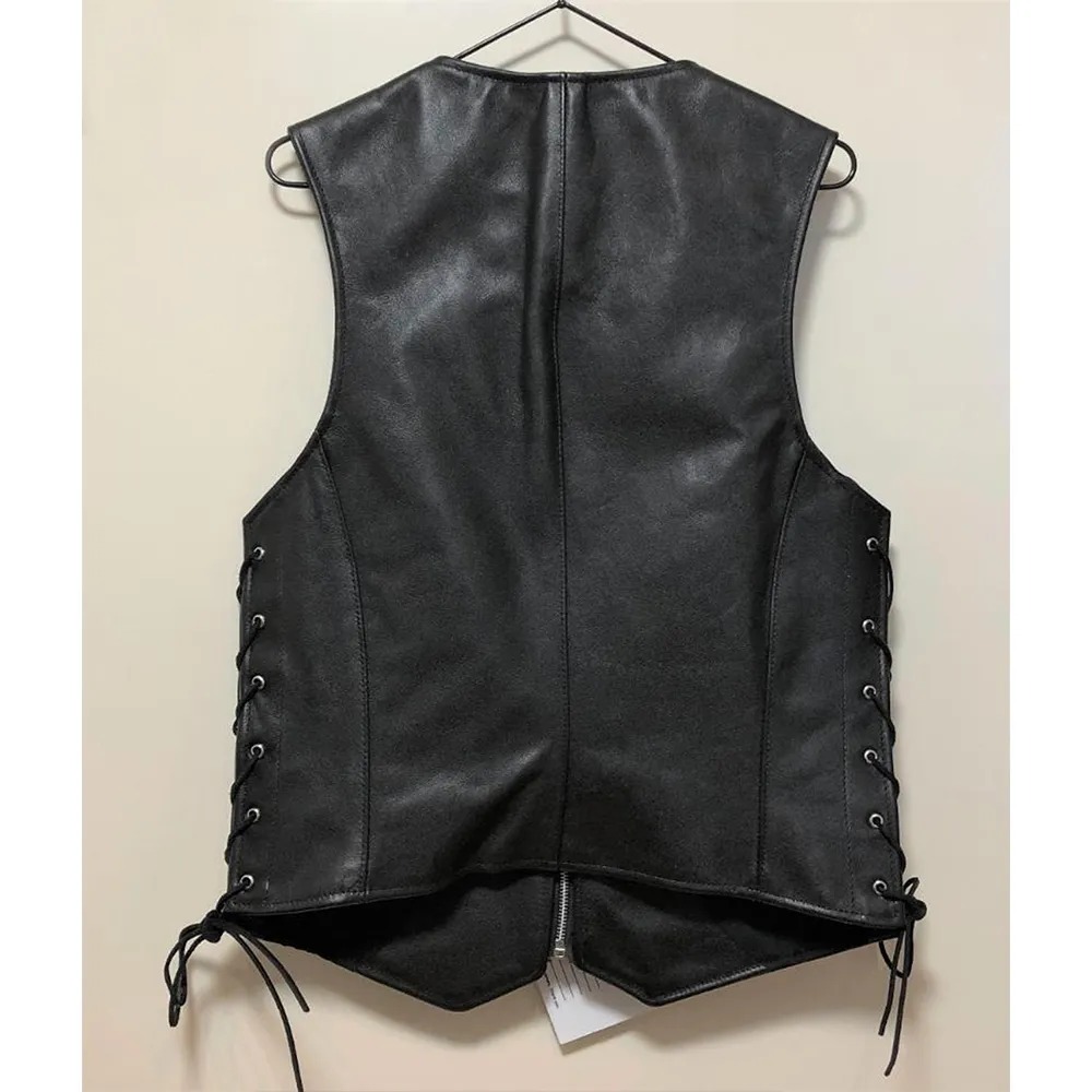 The Skeleton Print Black Leather Vest delivers unapologetic gothic attitude. Featuring a bold, detailed skeleton graphic printed across the front, this V-neck vest transforms classic biker silhouette into dark wearable art. Whether buttoned or zipped, it is the ultimate layer for those who ride with their bones on display and nothing to hide.