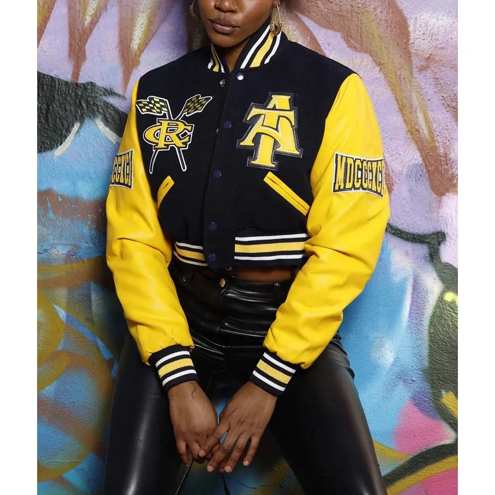 Women North Carolina A&T State University Black and Yellow Varsity Jacket