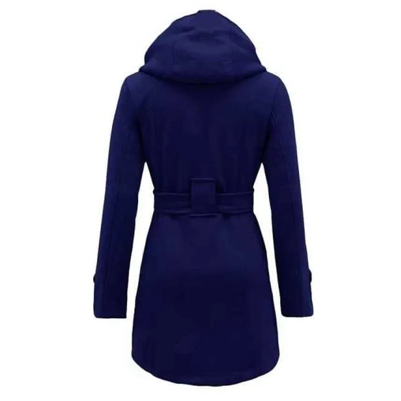 • Closure: Double-breasted and belted
